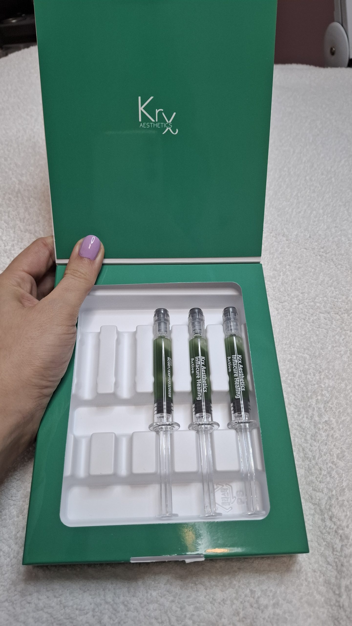 A bőr letisztítását KRX Cica 2in1 arctisztító géllel végzem, mely oxigenizáló komplexet tartalmaz , ezt követi a Toner , mely segíti a bőr barrierjének gyógyulását, kellemesen hidratál. Ezután a bőrtípusnak megfelelő peeling után gépi kezeléssel bejuttatom az Inflacure szérumot. ( UH, mezoterápia,  ) majd KRX CICA fátyolmaszkot alkalmazom. Utolsó lépésként  jön a zárókrém.
